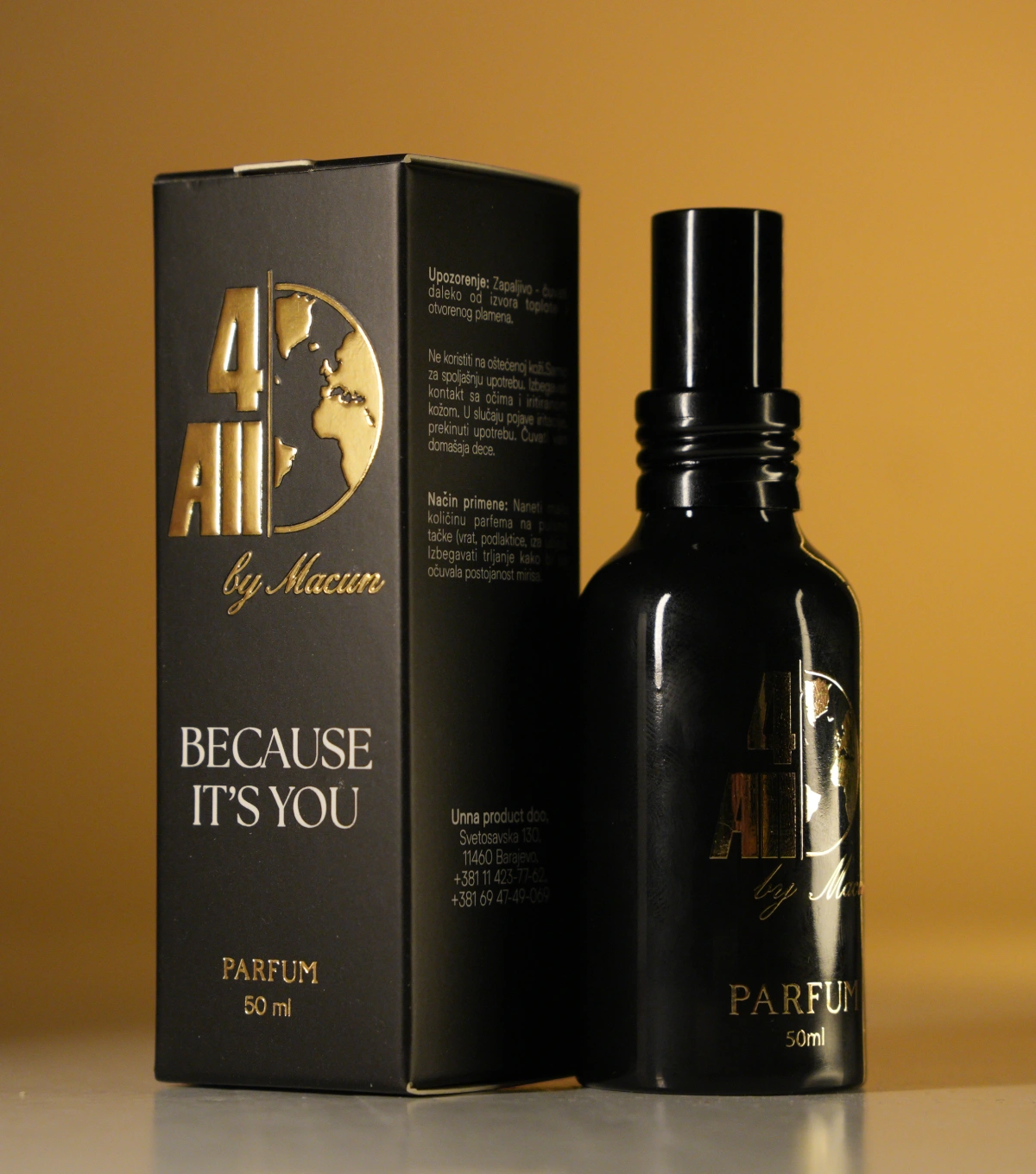 Because It’s You je moderan, ženstven i zavodljiv parfem koji slavi ljubav i strast. Njegova kompozicija je savršeno uravnotežena, spajajući svežinu voćnih nota, nežnost cvetova i senzualnost tople baze. Parfem odiše optimizmom, radošću i elegancijom, čineći ga savršenim za romantične i emotivne žene.
